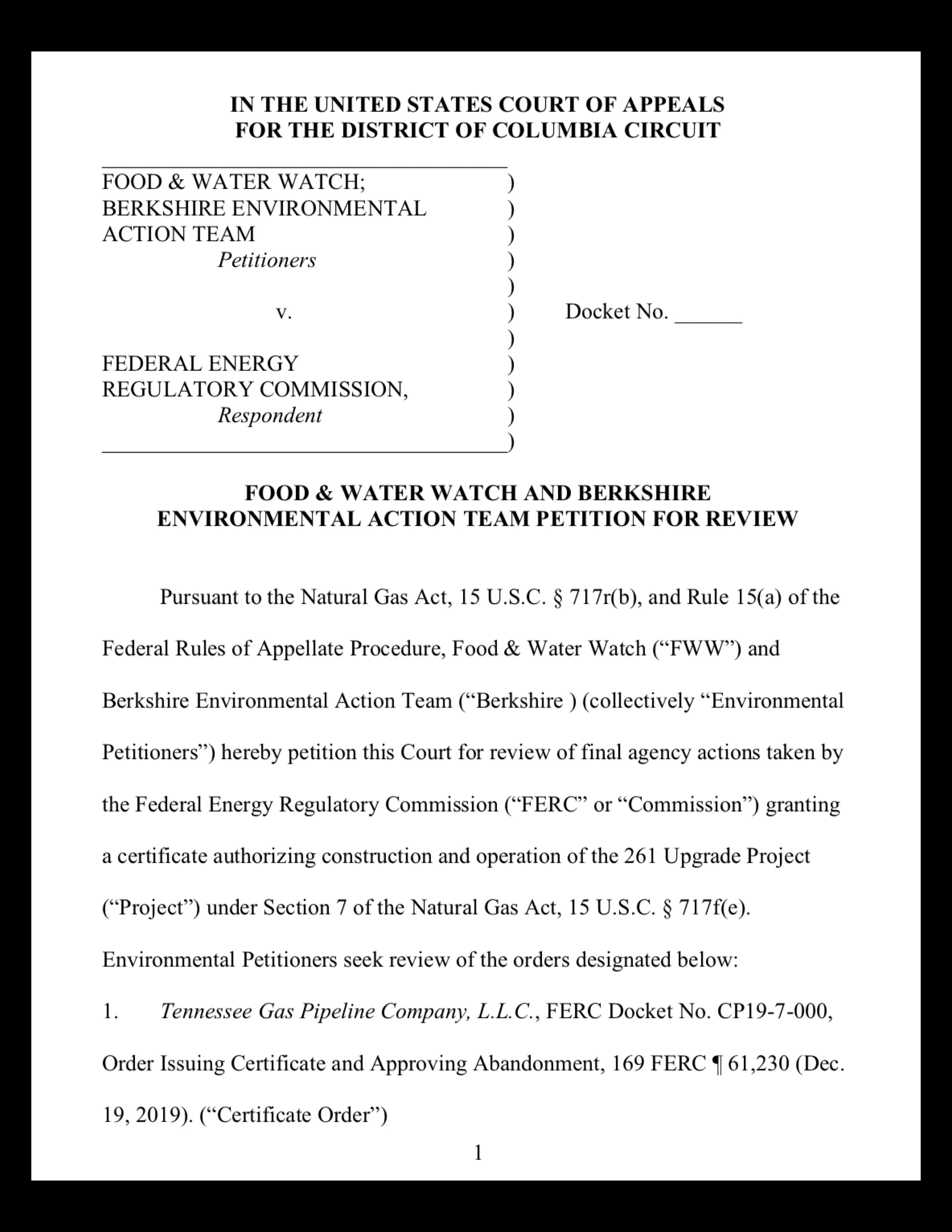 Berkshire Environmental Action Team has partnered with Food & Water Watch to bring the Federal Energy Regulatory Commission (FERC) before the D.C. Circuit Court of Appeals. The case has already been getting national attention, and if we win, and…