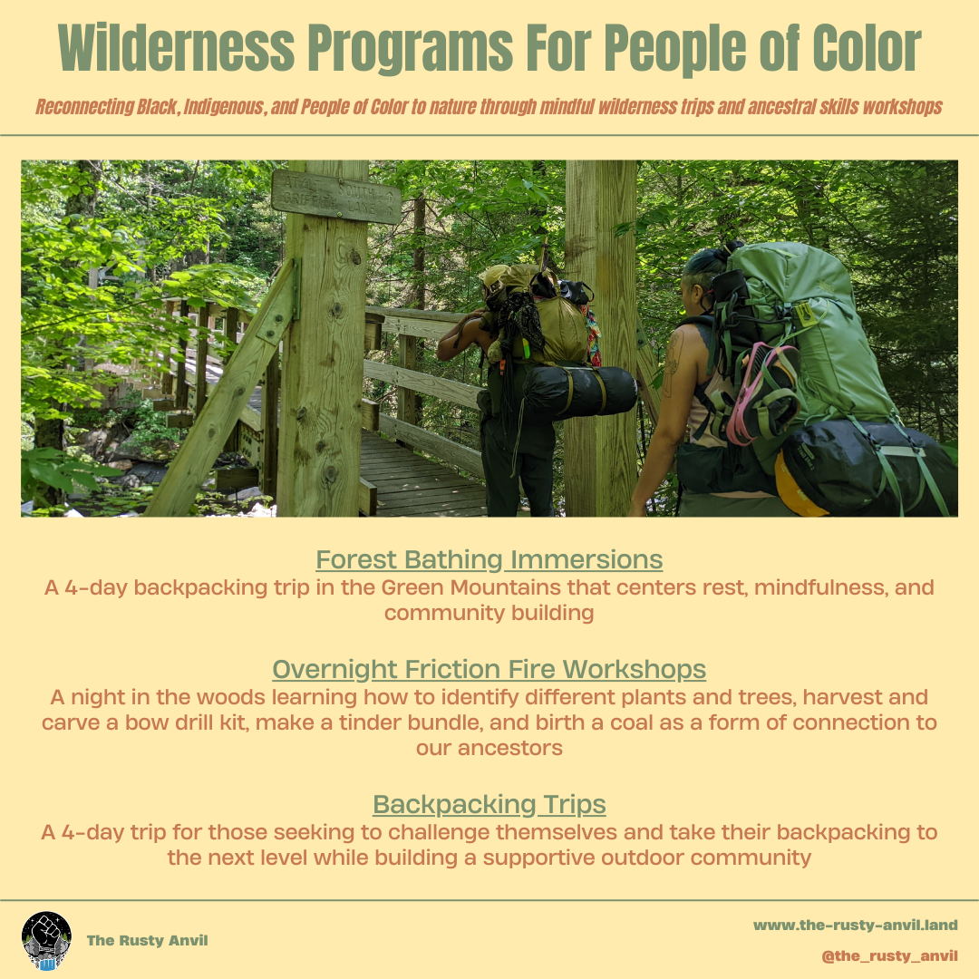 The BIPOC (Black, Indigenous, People of Color) friction fire workshop is an overnight experience to learn and practice the art of fire birthing. The group will participate in a land-walk to identify trees and other materials to make a bow drill kit. Participants will learn carving techniques and knife safety and begin carving their own bow drill kit. The second day will be spent together — fine tuning our kits, learning about tinder and fire lays, and working on getting a coal. There will be discussions on fire — both as a tool for survival and a bridge to the ancestral realm — and ponder ways friction fires can become a part of your daily, weekly, or monthly spiritual practices.