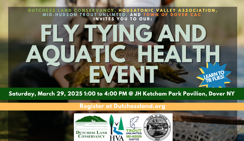 J H Ketcham Memorial Park 46 Ketcham Pk, Dover Plains, NYJoin Dutchess Land Conservancy, Housatonic Valley Association, Mid-Hudson Trout Unlimited, and the Town of Dover CAC for a community event to learn how to tie flies for fly fishing, understand the importance of the aquatic health of our rivers, and…