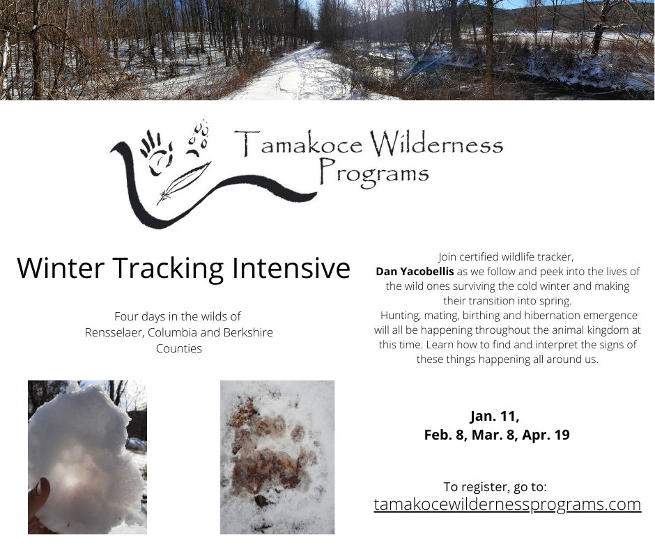 This intensive tracking study takes place 1 day per month over the course of 4 months. Learn to unlock the stories held in the tracks and trails of animals. Taken to a variety of habitats spread out through Rensselaer, Columbia…