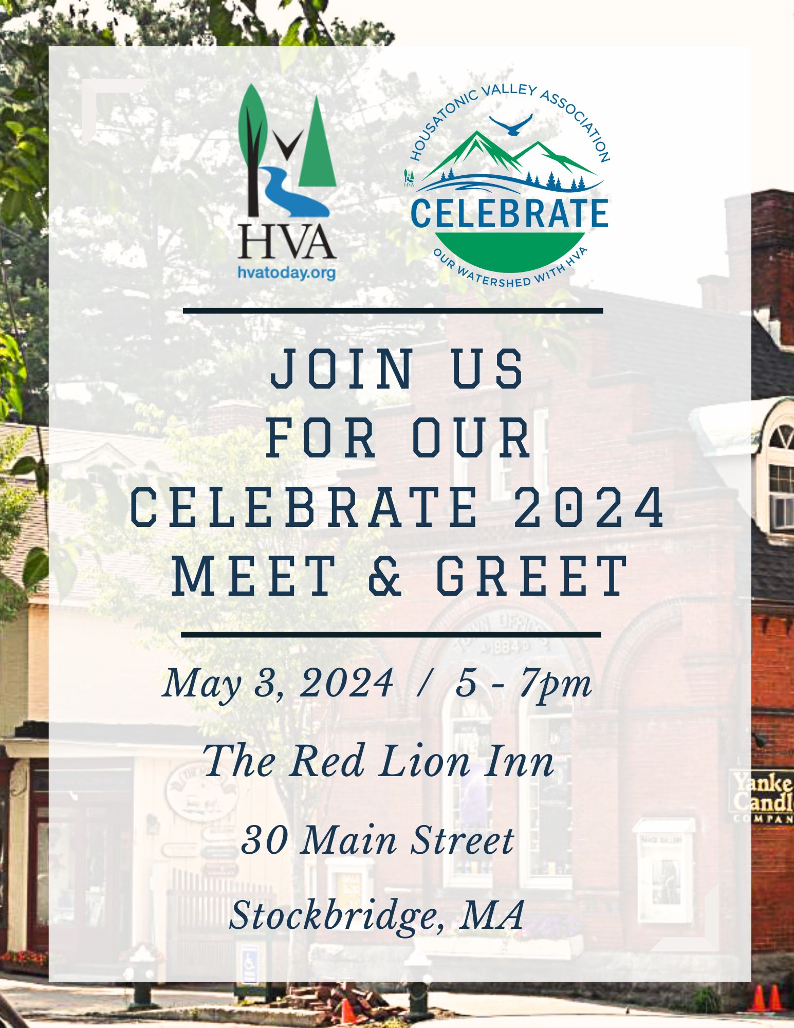 Red Lion Inn 30 Main St., Stockbridge, MAJoin Housatonic Valley Association to learn about their work in the Berkshires, and meet new Berkshire Watershed Director Erik Reardon Please email Gina Scherbner at gscherbner@hvatoday.org by April 30, to RSVP. DATE: Friday, May 3 TIME: 5:00 PM - 7:00 PM LOCATION: The…
