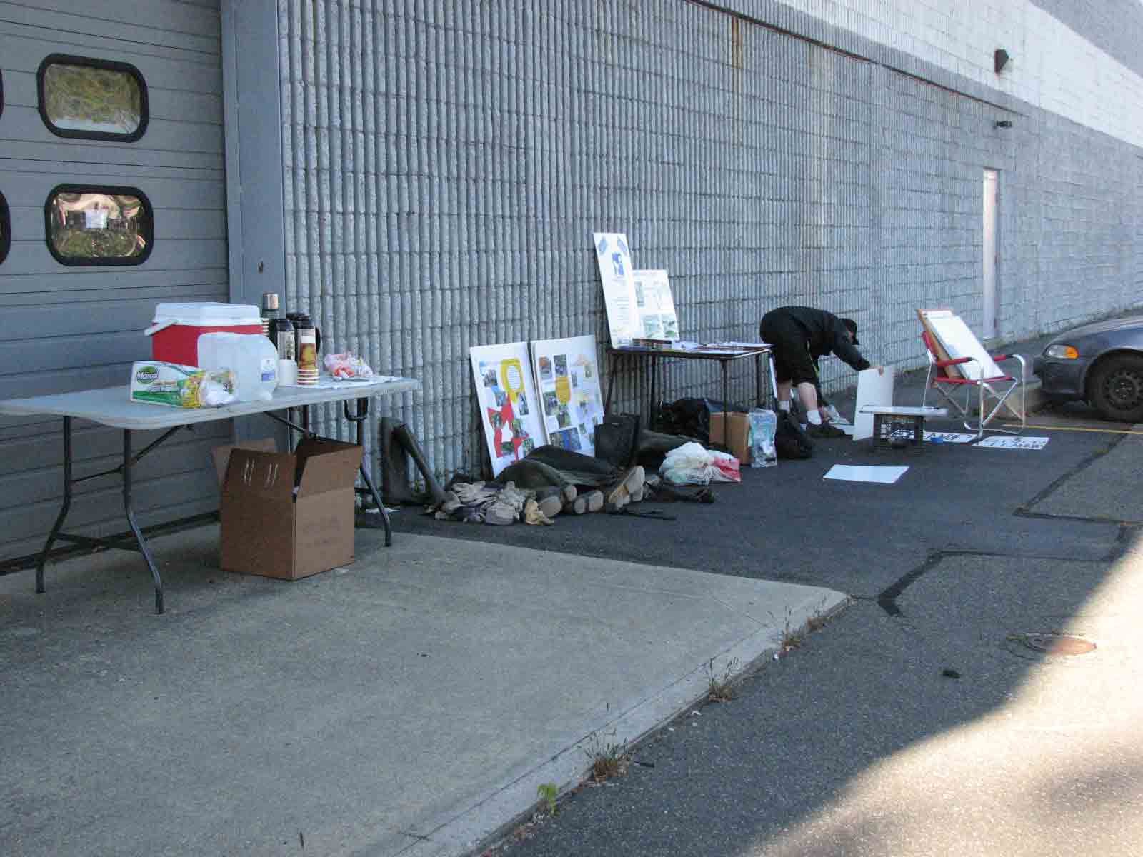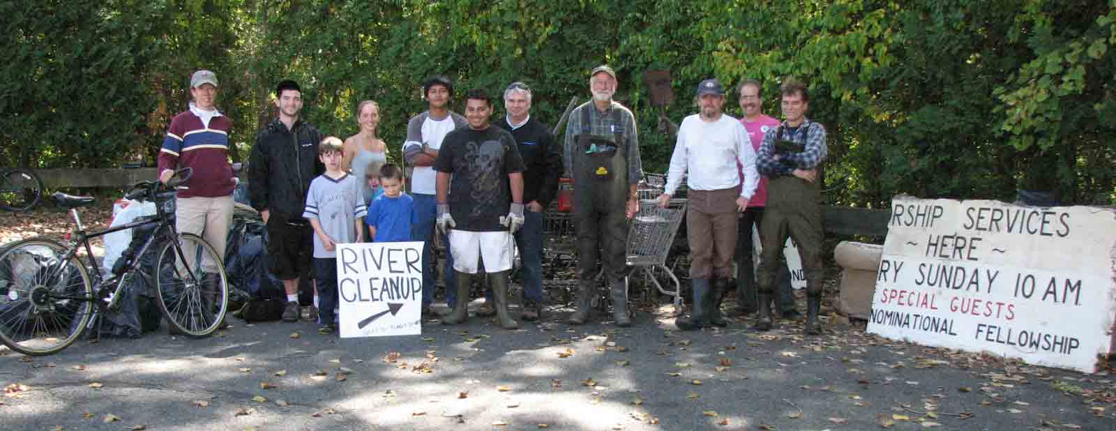 | The sign-in table | The trash included parts of TVs, computers, and an air conditioner; a file cabinet, a couch, two mattresses, a futon, about 13 shopping carts, 2 bicycles, and 18 bags of trash. | Photo by Tom Foody, Pittsfield Highway Dept, who hauled the trash away to Covanta, who agreed not to charge the City as long as the volunteers separated it (metal, recyclable, etc.) Thank you! |