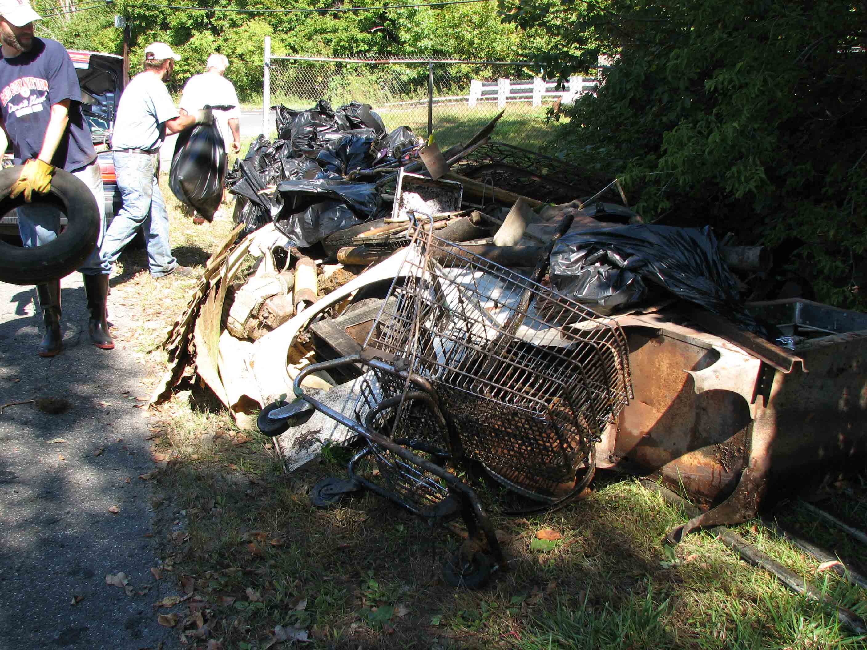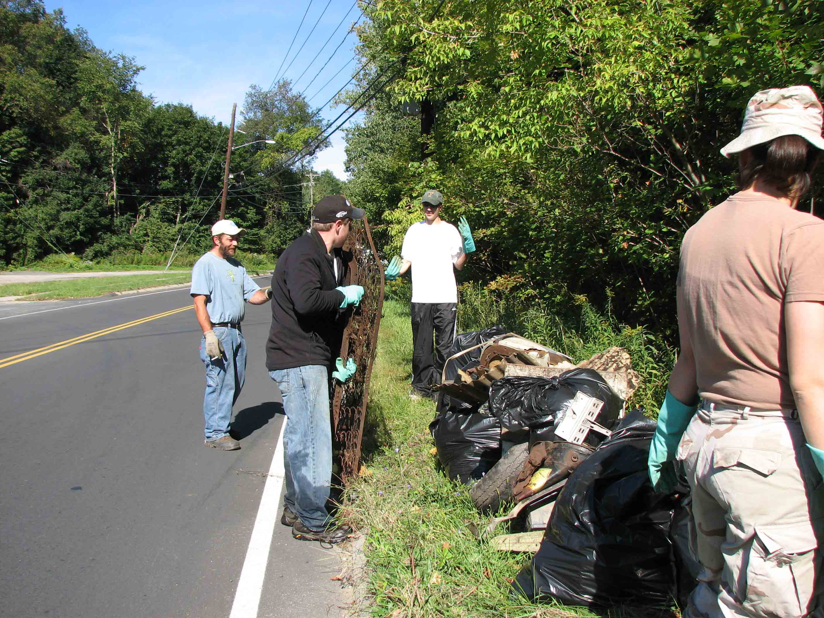 More than 30 people met in the parking lot of Pine Cone Hill on Pecks Road in Pittsfield to haul trash out of the brook that runs near by. We had volunteers from Pine Cone Hill, Taconic High School, First Church of Christ, Berkshire Community College, the Housatonic River Museum, Housatonic Valley Associtaion, Mass Audubon, the City of Pittsfield, and more. |