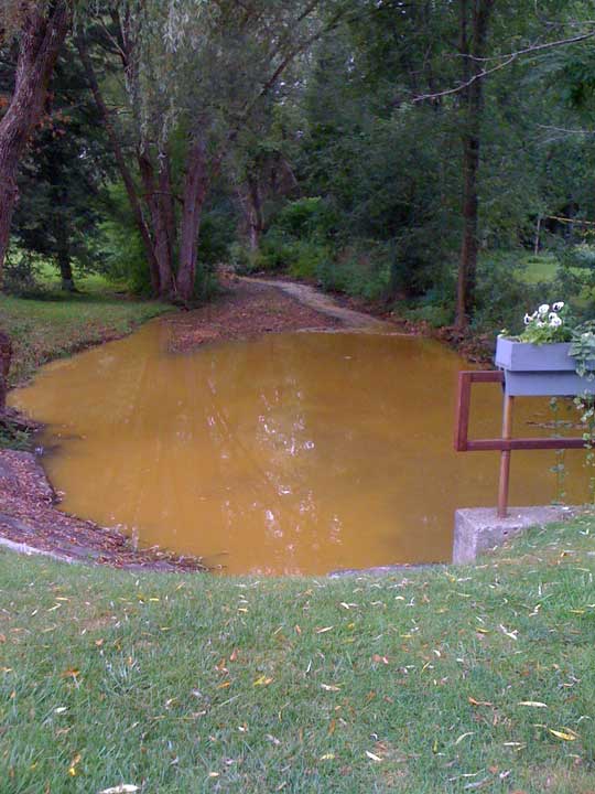 On the morning of July 20, 2010, Sackett Brook where it flows under Mountain Drive turned yellow. Alert neighbors notified their Ward Councilor who called BEAT. We investigated and indeed, the brook was yellow and murky.