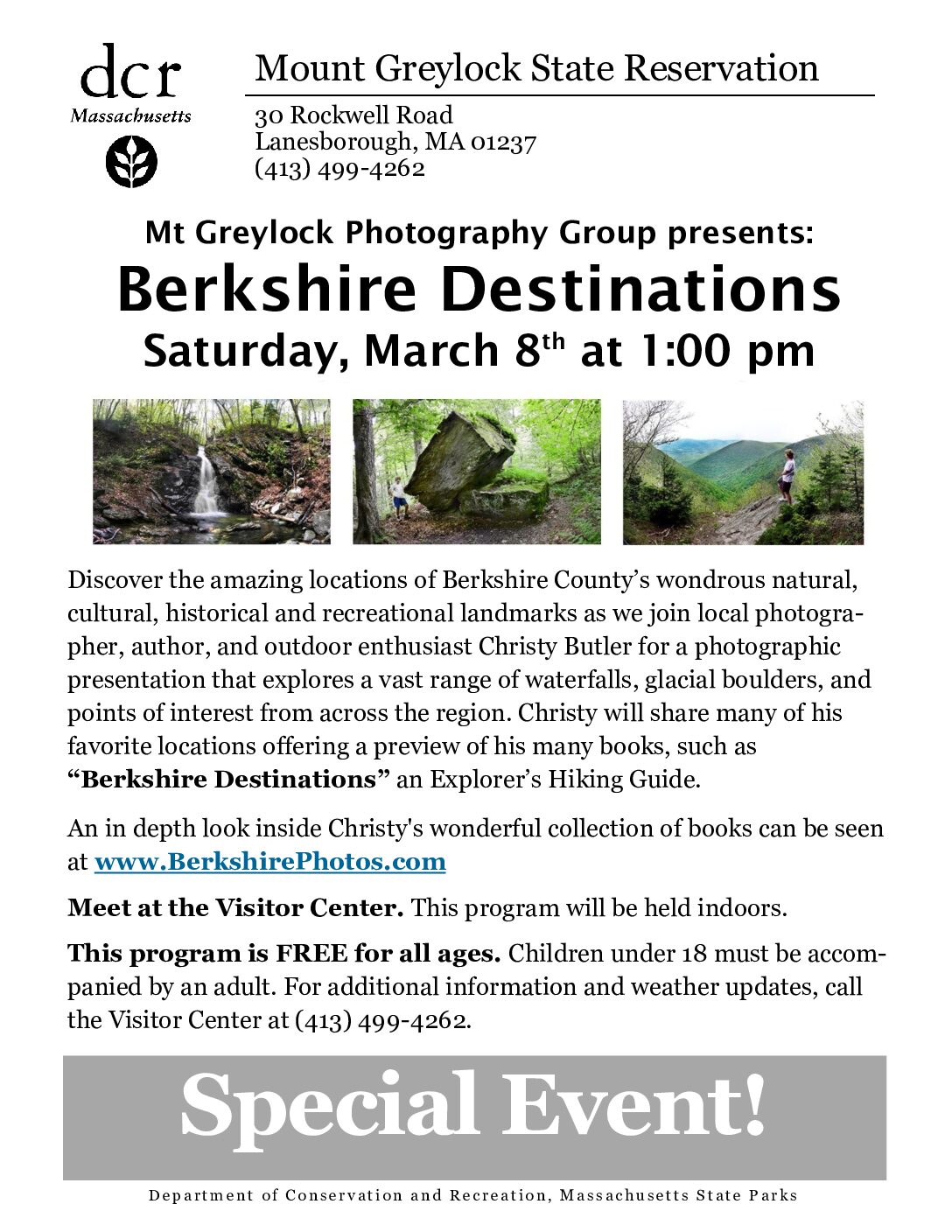 Join Tom Hoffman for a "Trip Around October Mountain, the largest state forest in Massachusetts. Learn about the terrain, history, and scenic locations from the comfort of your chair in the auditorium of the Berkshire Auditorium This free program is…