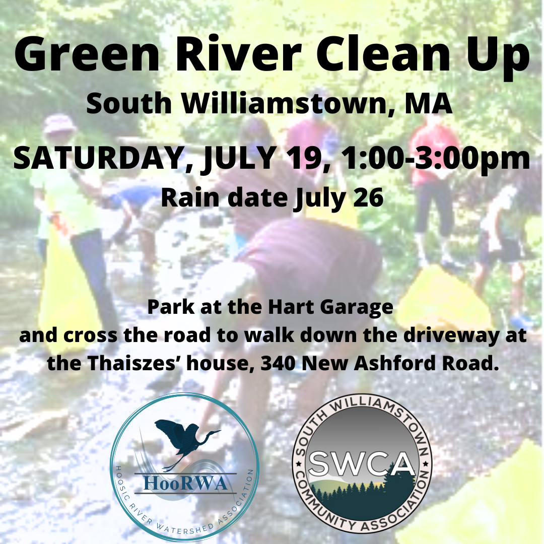 Join the Hoosic River Watershed Association and the South Williamstown Community Association for the annual Green River Clean Up on Saturday July 19th from 1-3pm. The Town of Williamstown has for the last few years been addressing the debris washing…