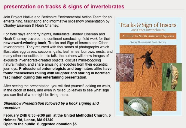 Presentation by the authors of “Tracks and Signs of Insects and Other Invertebrates.” You don’t want to miss it.