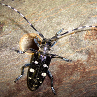 So how do you tell if you have one of these invaders? The best sources of information are the Beetle Detectives website and Stop the Beetle. The website Beetle Busters has information about both the Emerald Ash Borer and another introduced destructive insect – the Asian Longhorned Beetle.
